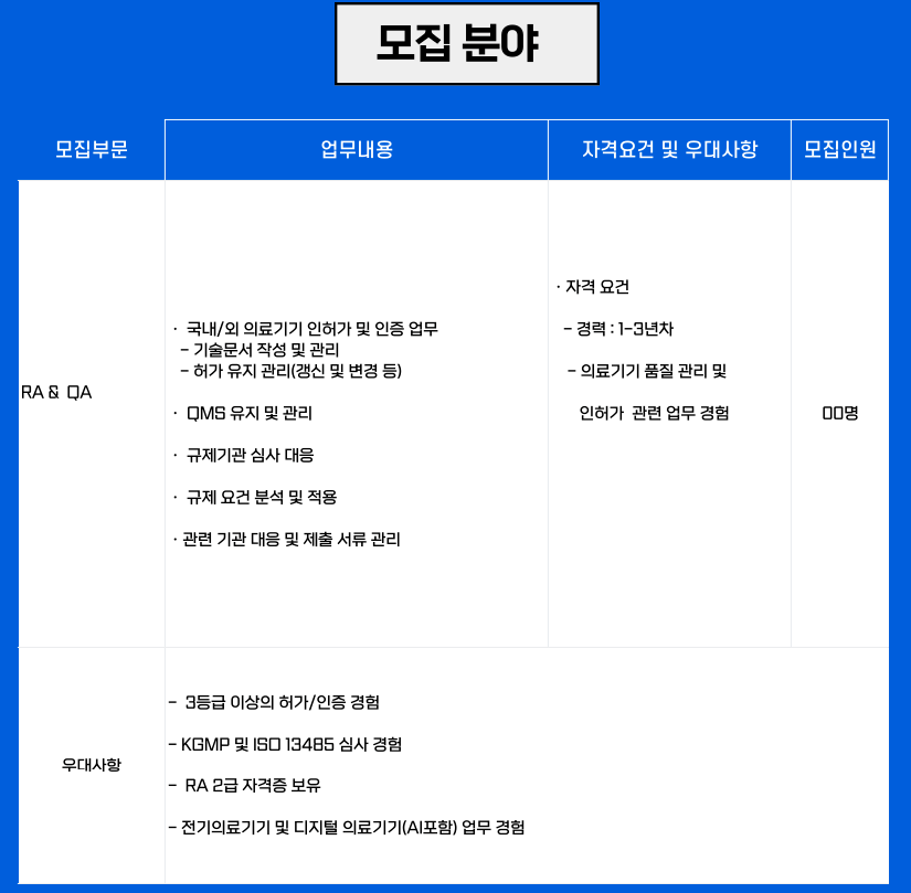 에어스메디컬 Regulatory Affairs Assistant 채용 안내